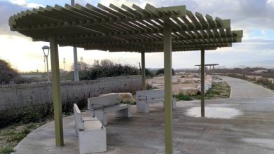 בדרך, סככות וספסלי ישיבה. הנוף המתגלה למטייל, נדיר ביופיו מצד מזרח ניתן